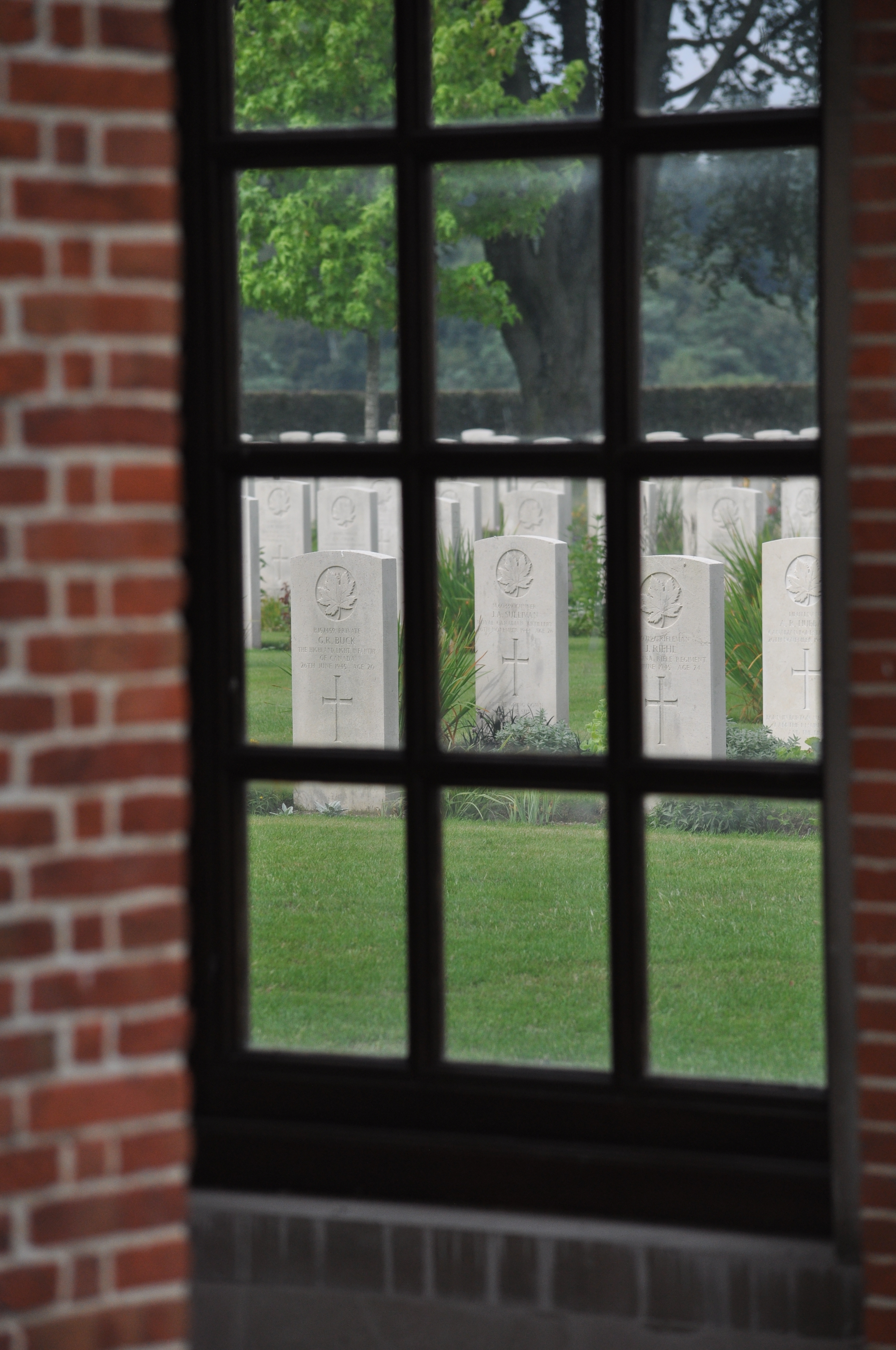 The cemetery is unique in that many of the dead were brought here from nearby Germany. It is one of the few cases where bodies were moved across international frontiers. It is believed that all fallen Canadian soldiers of the Rhineland battles, who were buried in German battlefields, were reinterred here (except for one who is buried in Reichswald Forest War Cemetery). General H.D.G. Crerar, who commanded Canadian land forces in Europe, ordered that Canadian dead were not to be buried in German soil.
